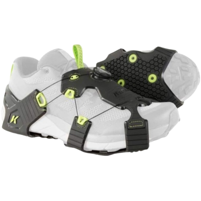 Kahtoola NANOspikes Review: We like the NANOspikes better for running as they are lightweight, have strategically placed concave studs, and a grippier plastic sole. The concave stud shape provides better grip at every angle – although, they aren’t replaceable.