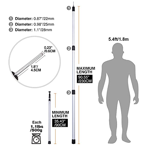 Specification: REDCAMP Aluminum Tarp Poles Heavy Duty and Adjustable, Set of 2, 35”-90”/75”-86″ Telescoping Lightweight Tent Poles for Tarp, Silver New/Silver New-4 Section