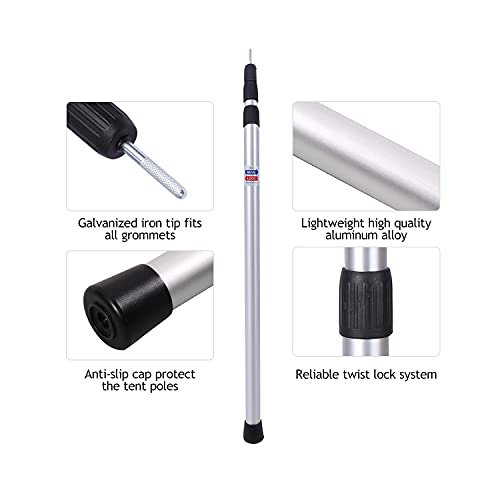 Durable Aluminum Pole: Our camping tarp poles are made from 6063 aluminum alloy, strong and durable, professional for shelter, hammock rain fly, awning, etc.