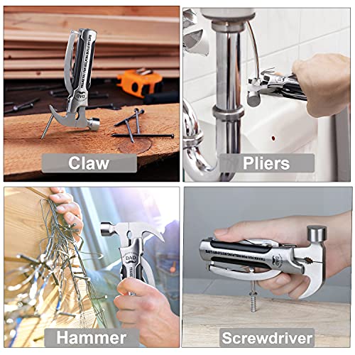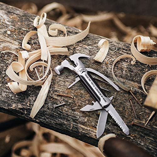 Heavy Duty Survival Tool: 12 reliable, multifunctional everyday tools combined into 1 multiuse hammer. Made of quality stainless steel, this small gift gadgets for men can help you hammer, cut, tighten, fix things easily and efficiently. Great gifts for dad who has everything.