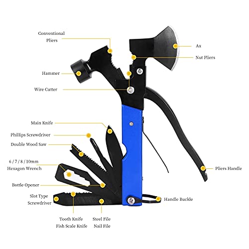Multi-Scene Application: It can be used for outdoor survival, camping fishing equipment, camping knives & tools, hiking gear, supplies daily use at home, DIY manual work, office, machine maintenance, industrial construction, etc. Backpacking gear accessories with multitool knife, opener, small axe, hammer.