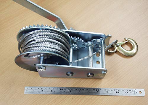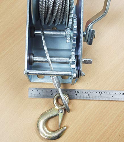 Specification: 2000LB H.D. Hand Winch Dual Gear Steel Cable ATV Towing Trailer Boat (1)